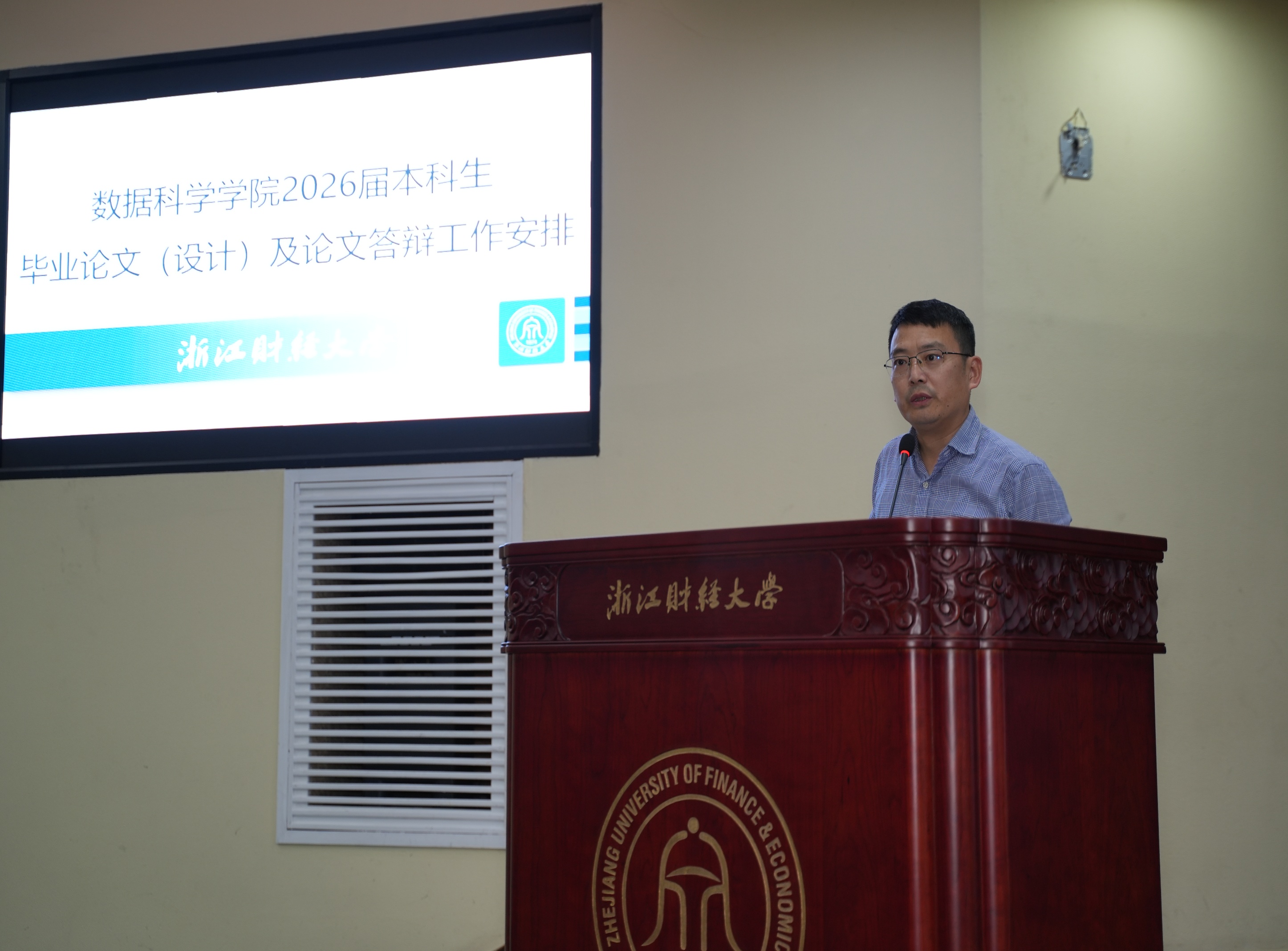 于10月29日下午在学术第一报告厅,面向全体2026届本科生召开毕业论文(设计)及论文答辩工作宣讲会。此次会议由学院副院长郑松主持。