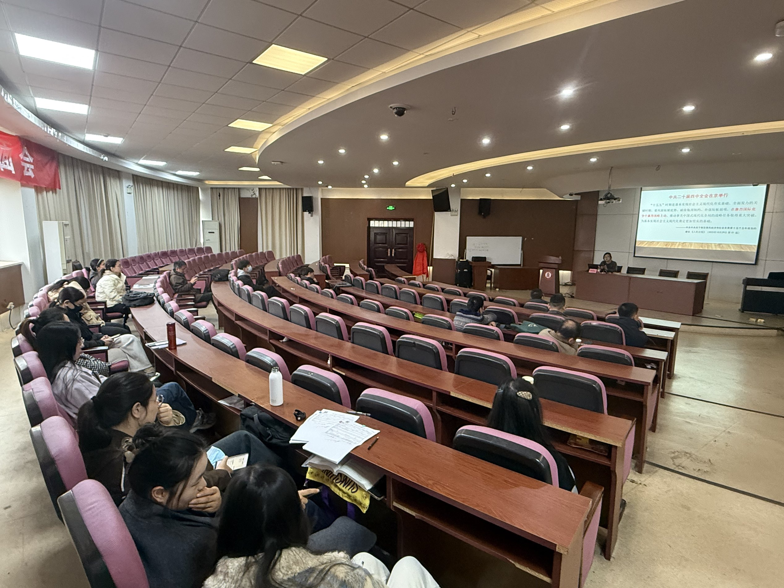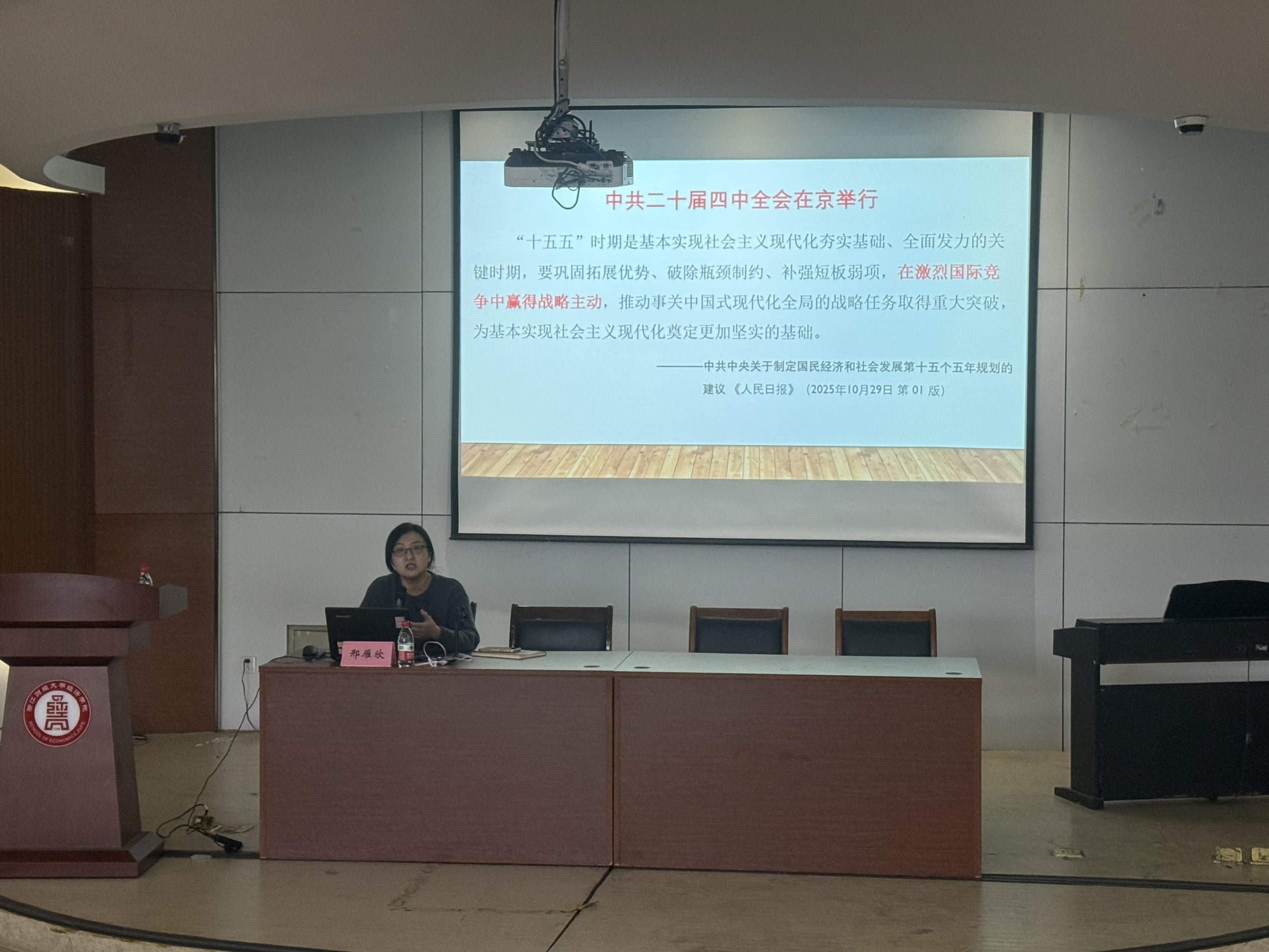 举办了以“学习贯彻二十届四中全会精神”为主题的“数科讲坛”第7期专题讲座,引导全院教职工领会全会核心要义,切实把思想和行动统一到全会部署上来。本次讲座特别邀请马克思主义学院邢雁欣老师担任主讲人,学院全体教职工参与学习。