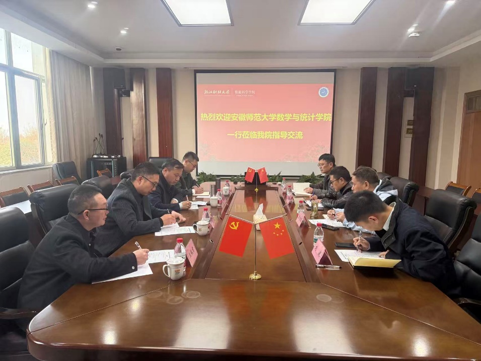 为加强兄弟院校间的交流合作,深化党建与学科建设融合发展,探讨人才培养与教学管理创新路径,2025年12月11日下午,安徽师范大学数学与统计学院党委书记黄友胜、副院长曹明安、崔建,统计系主任王佩君一行4人莅临成人短视频