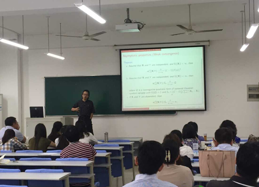 201569日,肯塔基大学殷向荣教授应邀来我校讲学,做了题为“A new measure for testing independence”的专题讲座。数学与统计学院部分老师及全体研究生参加了此次讲座。报告会由数学与统计学院副院长,邱瑾教授主持。