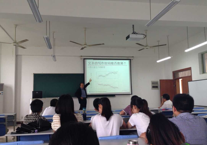 报告会上,金明哲教授指出随着大数据时代的到来,我们的学科结构面临更大的挑战,大数据大部分是文本数据,而许多学科都与文本相关。因此,我们可以通过从不同角度获取各类数据组,应用数据分析和挖掘的方法来对其进行分析。金明哲教授还通过语料分析、文学作品作者识别、刑侦案件侦破、社会调查、市场分析和金融利息预测等实例,来解析日本文本统计分析与挖掘的现状以及最新成果,并说明了科学研究的无界性和统计思想的普适性。讲座结束后,金明哲教授还与部分师生就相关的问题进行了更加深入的交流解答,让在座的师生感到受益匪浅。