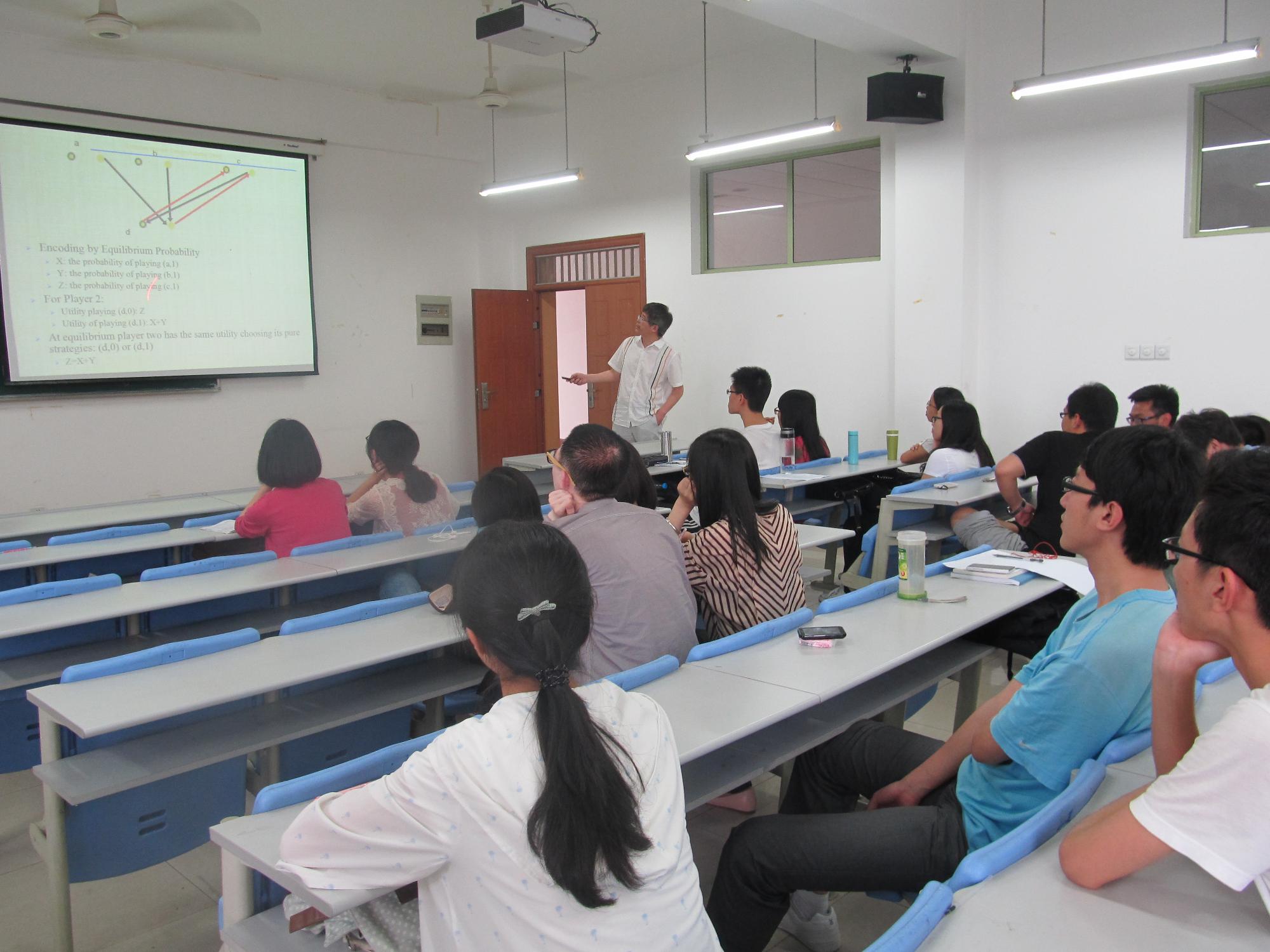 2014年5月16日下午,上海交通大学邓小铁教授应邀来我校演讲,做了题为“Internet Monetary Systems——浅谈比特币”的学术报告。数统学院师生参加了此次讲座。报告会由数统学院程郁琨副教授主持。