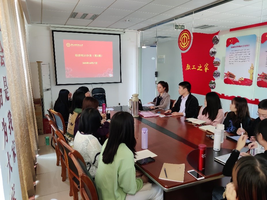 10 月27日,第2 期经济统计沙龙在学院楼 500会议室举行。本次沙龙的主题是专题卫星账户编制方法研究。本次沙龙由经济统计系郑彦老师主讲,刘波老师主持。近20位老师、研究生和本科生参与此次沙龙。