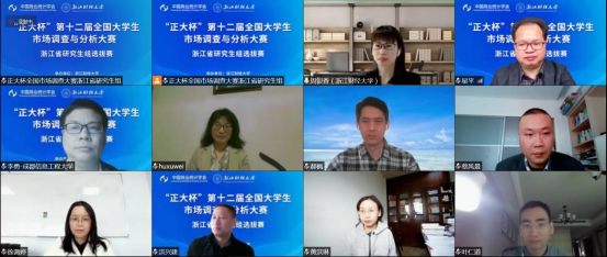 4月16日,“正大杯”第十二届全国大学生市场调查与分析大赛浙江省研究生组选拔赛在成人短视频 通过腾讯会议的方式举行。本次大赛由中国商业统计学会主办,成人短视频 承办,大赛吸引了全省339名研究生报名,经过校赛初选、省赛网络评审等环节,共有20支参赛团队入围了最后的线上展示和答辩环节。大赛邀请了成都信息工程大学、天津商业大学、浙江省统计局、杭州电子科技大学、浙江理工大学、浙江工商大学、浙江师范大学、温州大学、成人短视频 等单位的专家作为评委邀请天津财经大学王健老师担任大赛仲裁委员会主任,东北财经大学刘颖老师、屈超老师担任大赛仲裁委员会委员。大赛开闭幕式由成人短视频 副院长周银香主持。