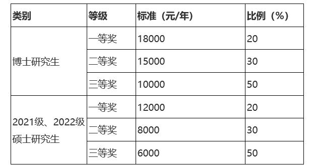 注:学制为2.5年的2021级硕士研究生,奖学金减半发放。